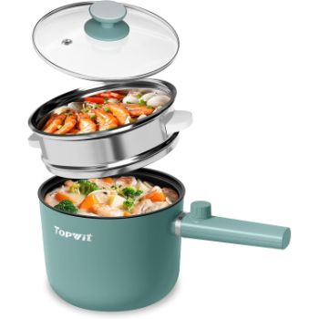• Topwit Electric Hot Pot with Steamer, 1.5L Ramen Cooker