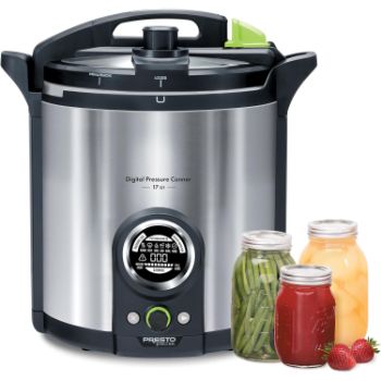 Presto Precise 17-Quart Digital Electric Pressure Cooker and Canner is designed to make home canning safer, simpler, and more convenient. With its automated system and clear LED display, this electric pressure cooker and canner guides you through each step of the canning process, helping both beginners and experienced users achieve reliable results. An innovative temperature sensor maintains the exact processing temperature needed for safe food preservation, while the extra-tall design allows you to process quart jars with ease. Built with durable stainless steel and equipped with multiple safety features, this appliance offers a dependable way to preserve vegetables, meats, soups, jams, and more right from your kitchen.