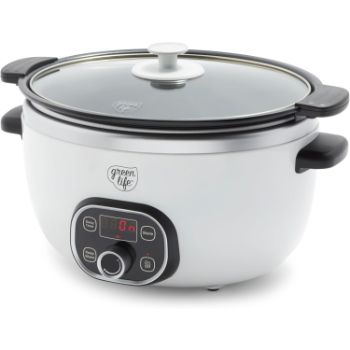 GreenLife 6QT Programmable Slow Cooker brings a fresh take on healthy home cooking. Featuring a PFAS-free ceramic nonstick coating, this cooker is ideal for health-conscious families who want toxin-free meals without sacrificing convenience. Its lightweight, removable bowl is oven and stovetop safe, so you can sear, sauté, and slow cook in one pot. The digital control panel lets you choose between Low, Medium, and High heat settings, add a delay timer, and rely on the Keep Warm function to serve when you’re ready. From one-pot meals to hands-off dinners, it’s the kind of slow cooker that fits seamlessly into busy, modern kitchens.