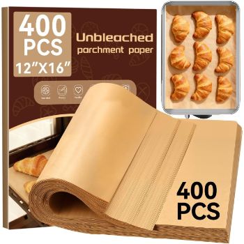 - 400 pre-cut parchment paper sheets sized at 12 x 16 inches