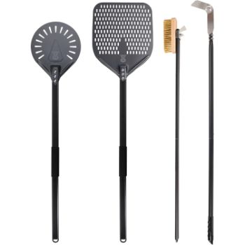 - 4 Essential Tools: Includes a large peel, turning peel, pizza cutter, and oven brush with scraper