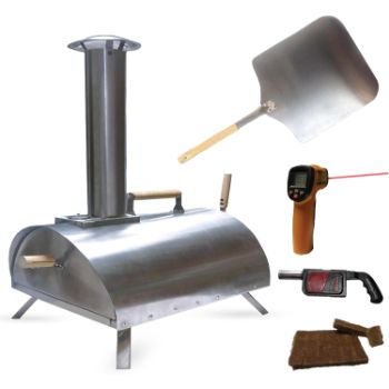 - Complete Pizza Kit: Includes oven, pizza peel, baking stone, blower, thermometer, and fire starter