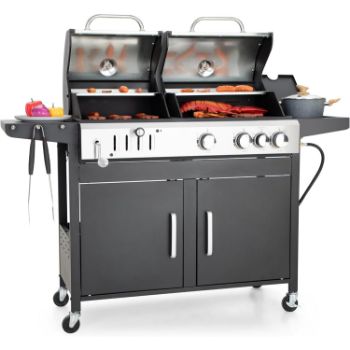 Grills House dual bbq grill gas and charcoal outdoor combo is built for outdoor cooking fans who want maximum flexibility in one powerful setup. This grill combines gas grilling, charcoal grilling, and an offset smoker, allowing you to cook fast meals, slow smoked dishes, and everything in between. With a large cooking area and smart features like a side burner and adjustable charcoal pan, it works well for family cookouts, weekend barbecues, and gatherings with friends. The design is practical, spacious, and made to support different cooking styles without needing multiple grills.
