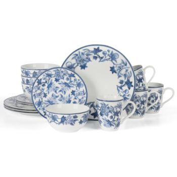 Martha Stewart Goodale porcelain dinnerware set vintage blue is a charming 16 piece collection that brings classic floral beauty to your table. Designed with blooming blue vintage patterns across each plate and bowl, this set creates a fresh and elegant tablescape for both everyday meals and special gatherings. It includes dinner plates, dessert plates, cereal bowls, and mugs, perfectly sized for service for four. Crafted from durable porcelain with a semi glossy finish, this set blends style and strength while being safe for the dishwasher and microwave. If you love timeless blue floral designs with a refined yet cozy feel, this set adds effortless elegance to your kitchen.