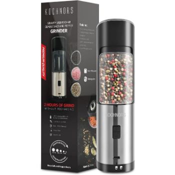 • Kochnors Gravity Electric Peppercorn Grinder Mill with USB Rechargeable Power